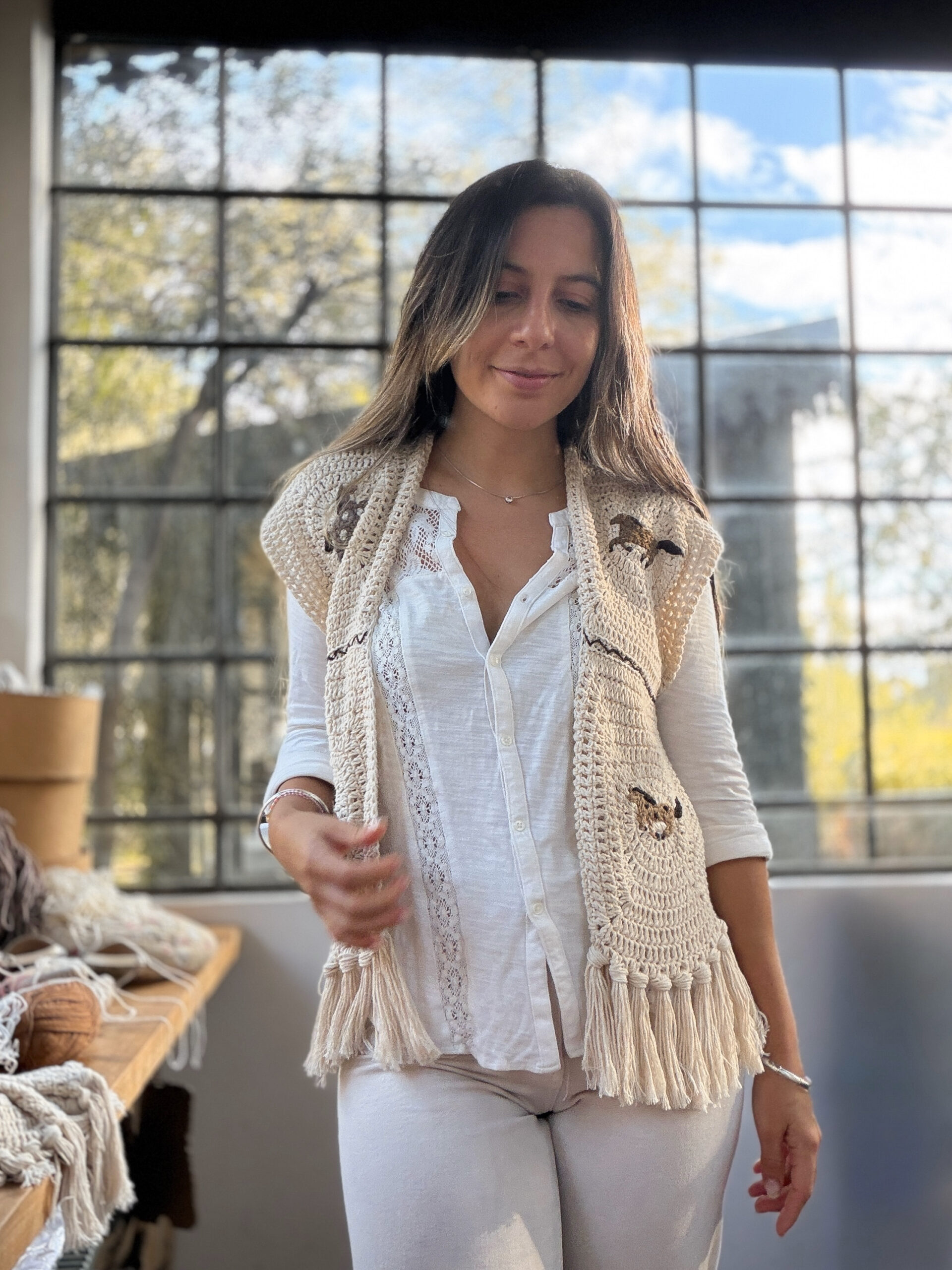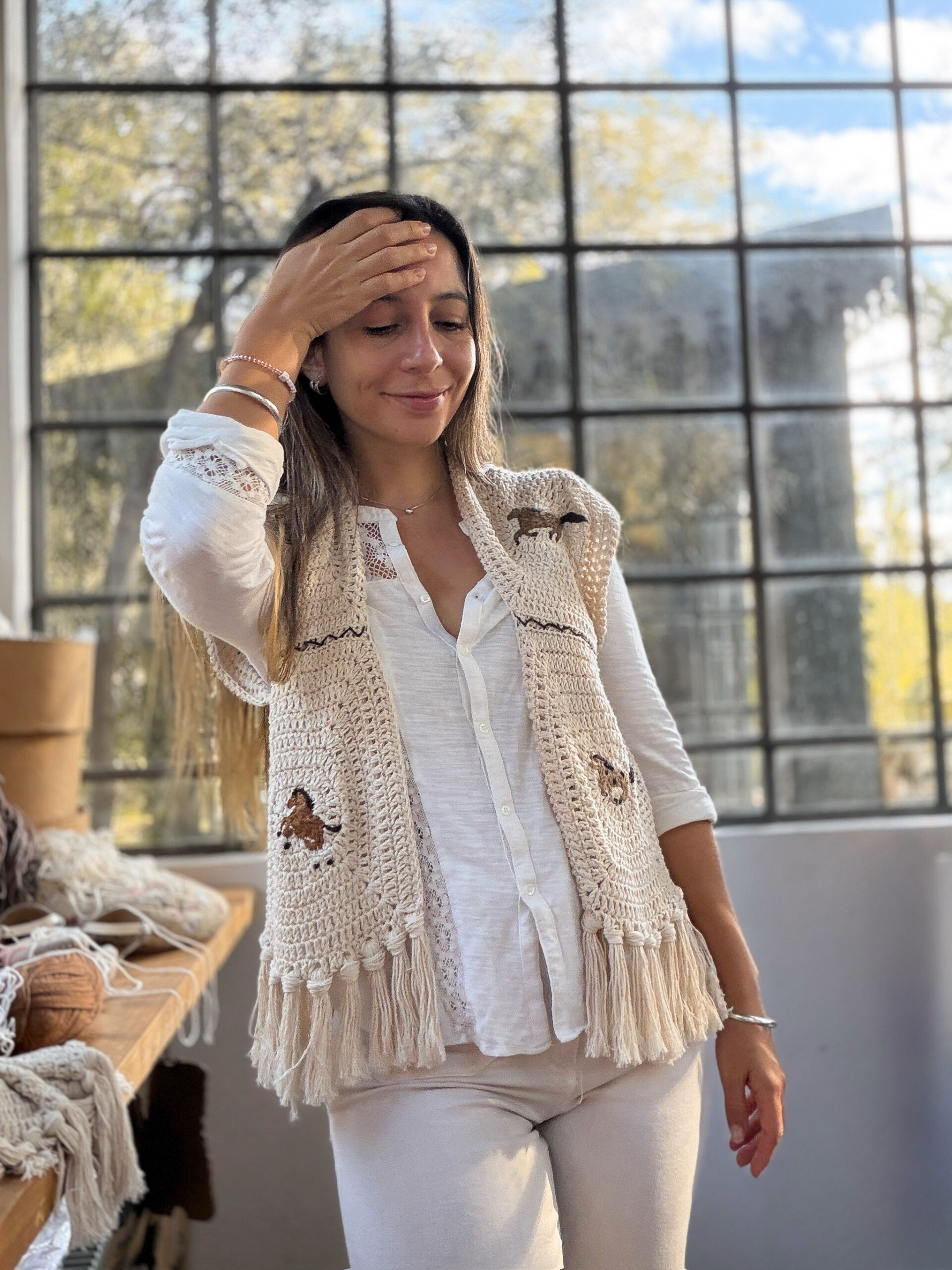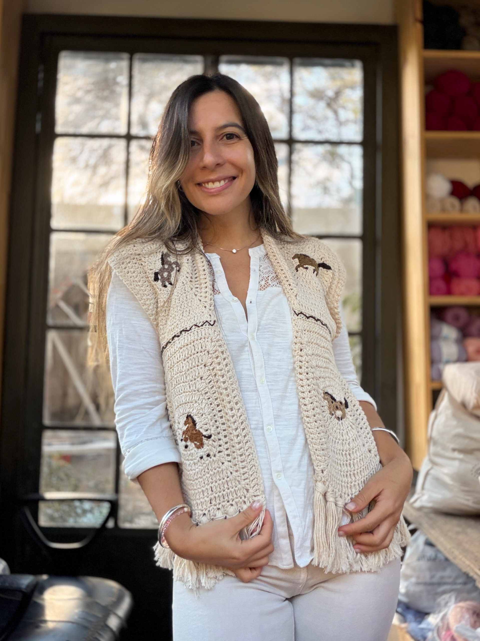 Está tejido a mano con técnica Crochet, con motivos de caballitos bordados ♥