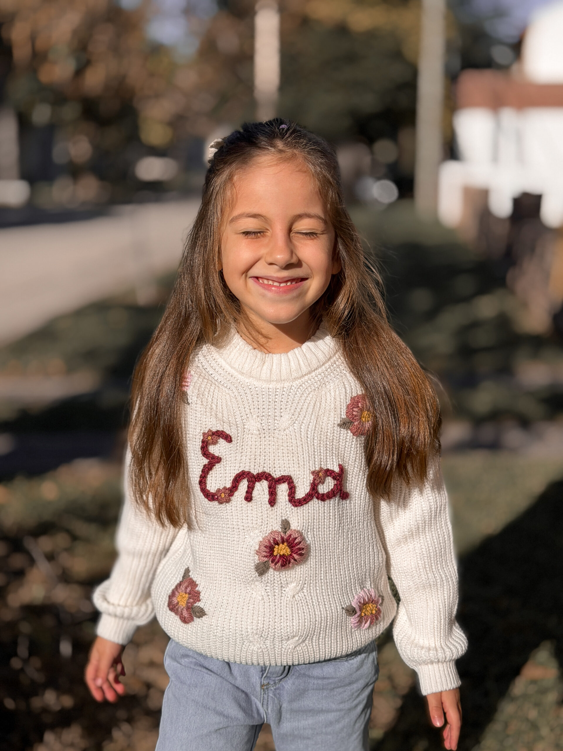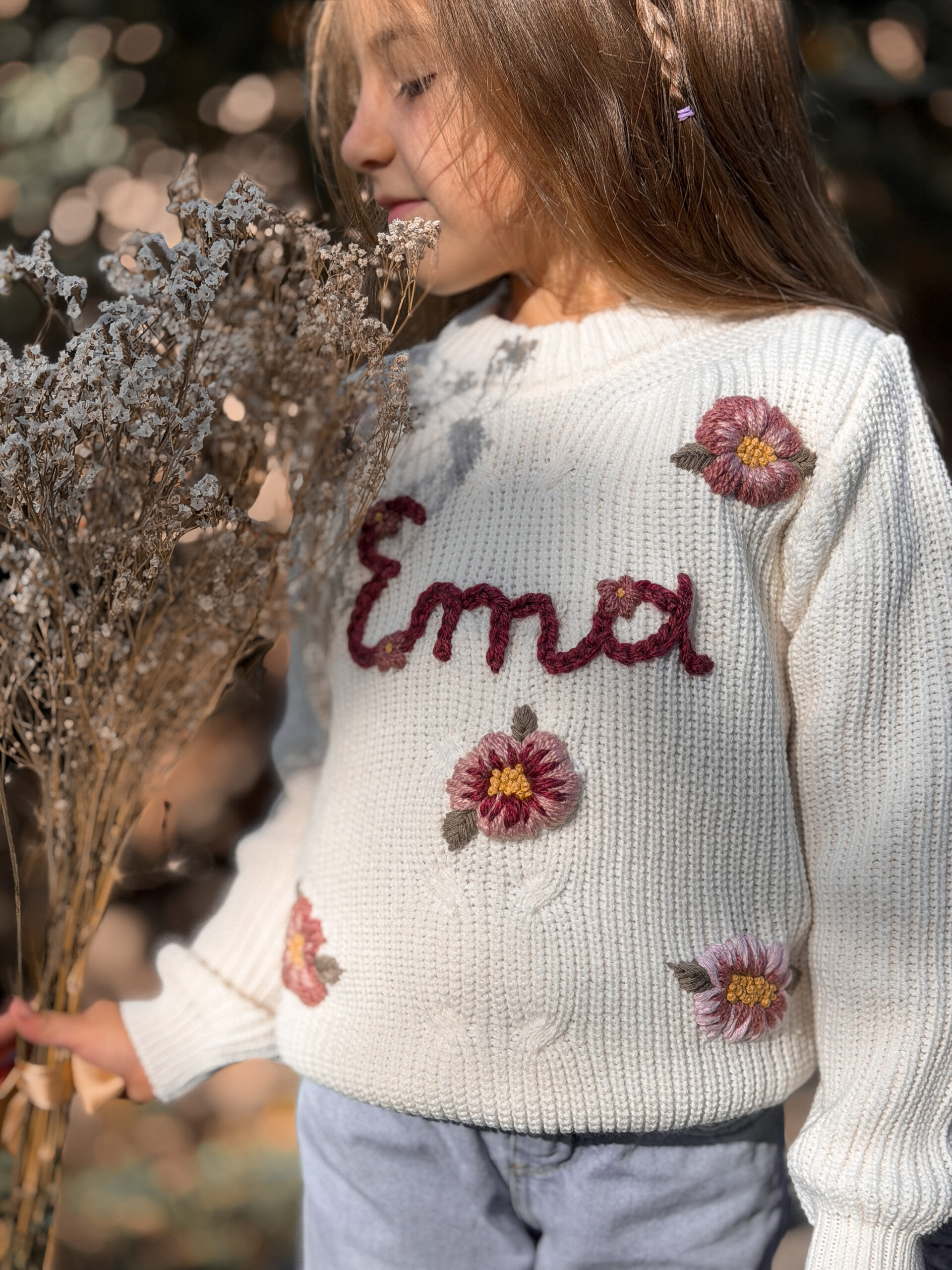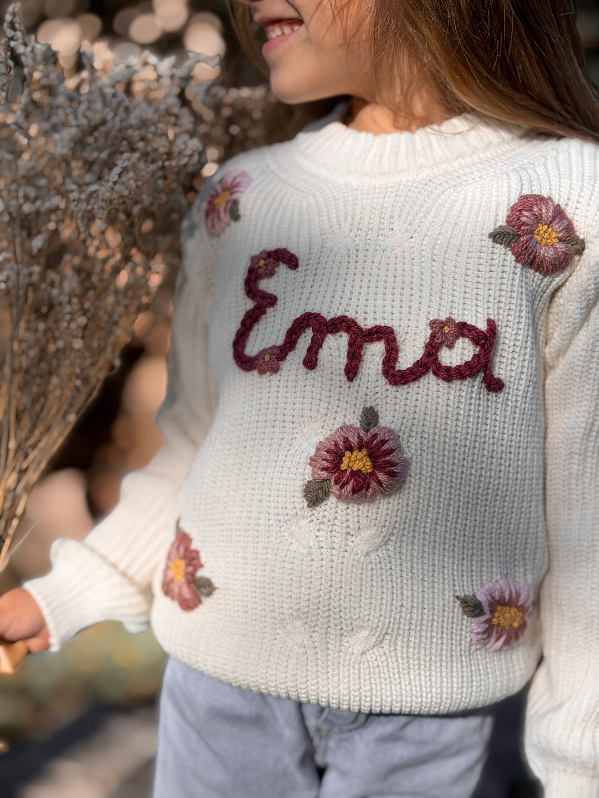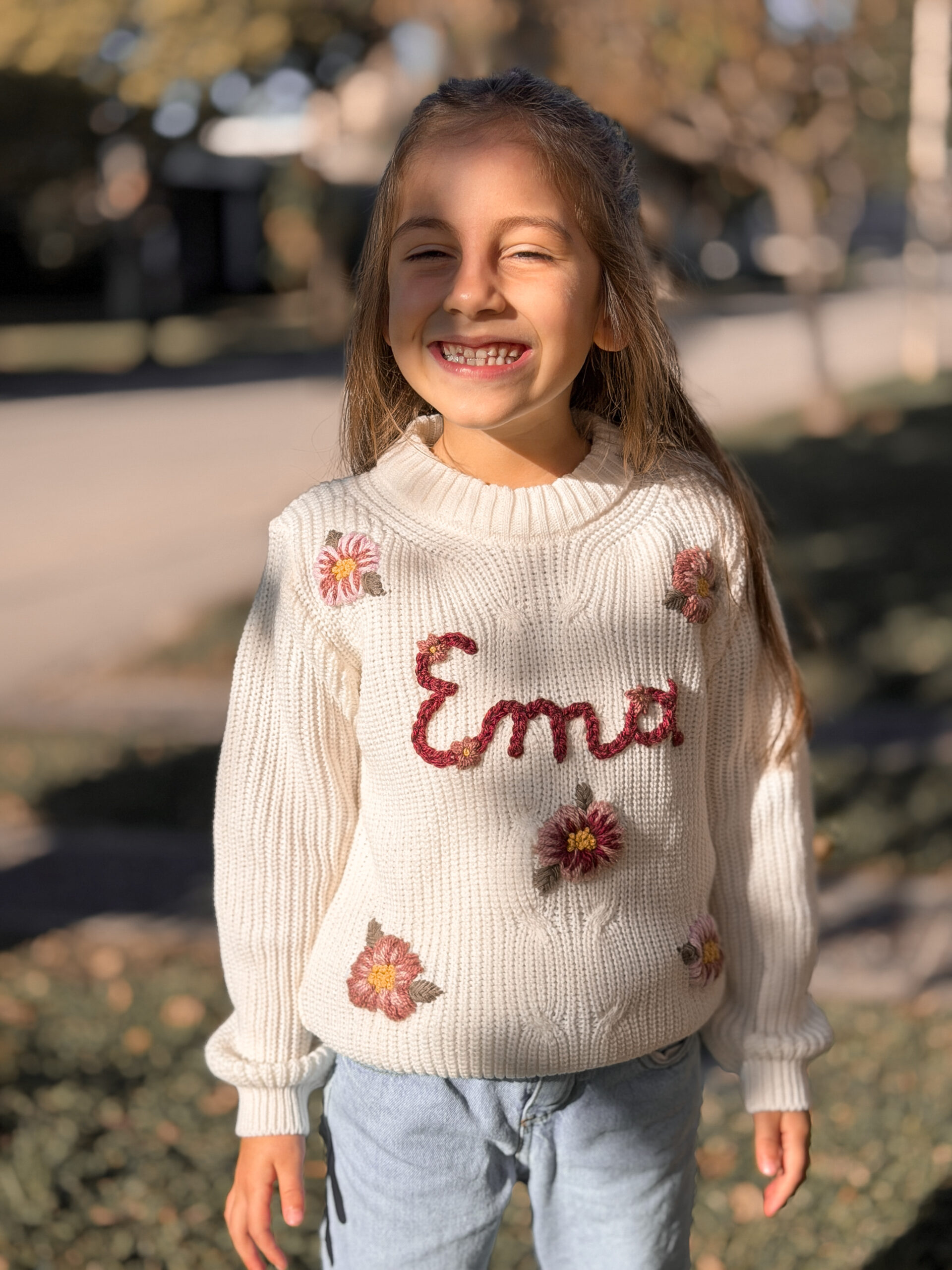 Este sweater es personalizado. Podes elegir el diseño que prefieras (flores, honguitos, duendes, animalitos, y un sinfín de etc!), y podes ponerle el nombre de tu niña, su inicial o lo que prefieras ♥